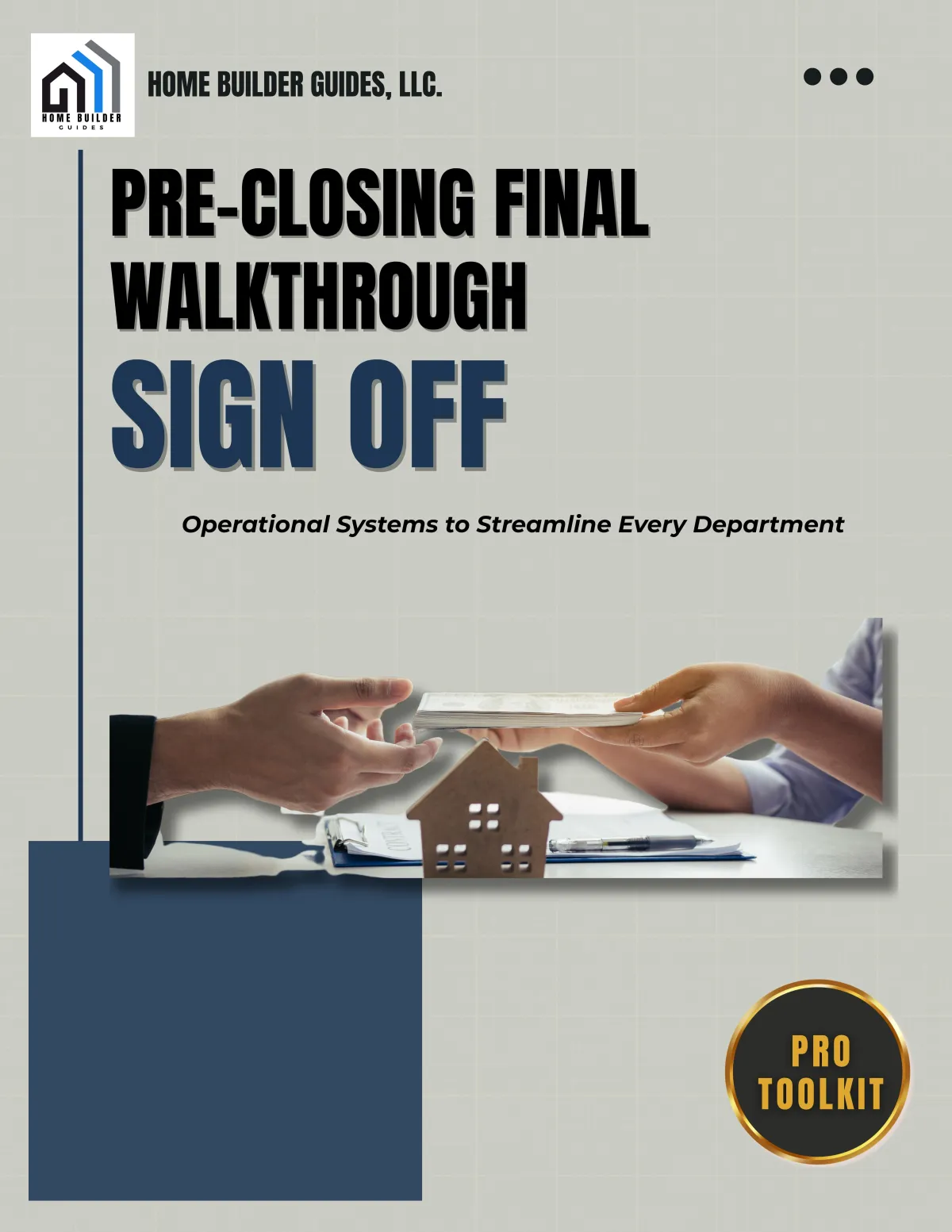 Helps ensure buyers receive a complete, professional walkthrough of their new home. This is your 1st line of defense to document exactly the condition of the home at this critical stage.